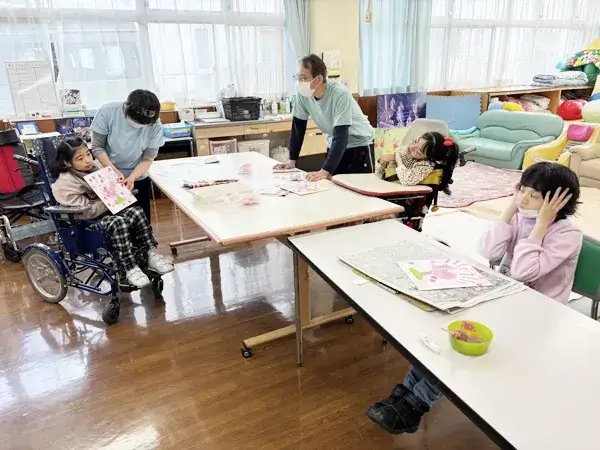 長期休みは、お花見、プールで水遊び、買い物外出、初詣、書初めなどの季節にちなんだ活動や、友だちと協力し合い一緒に楽しめる活動をするよう心がけています。